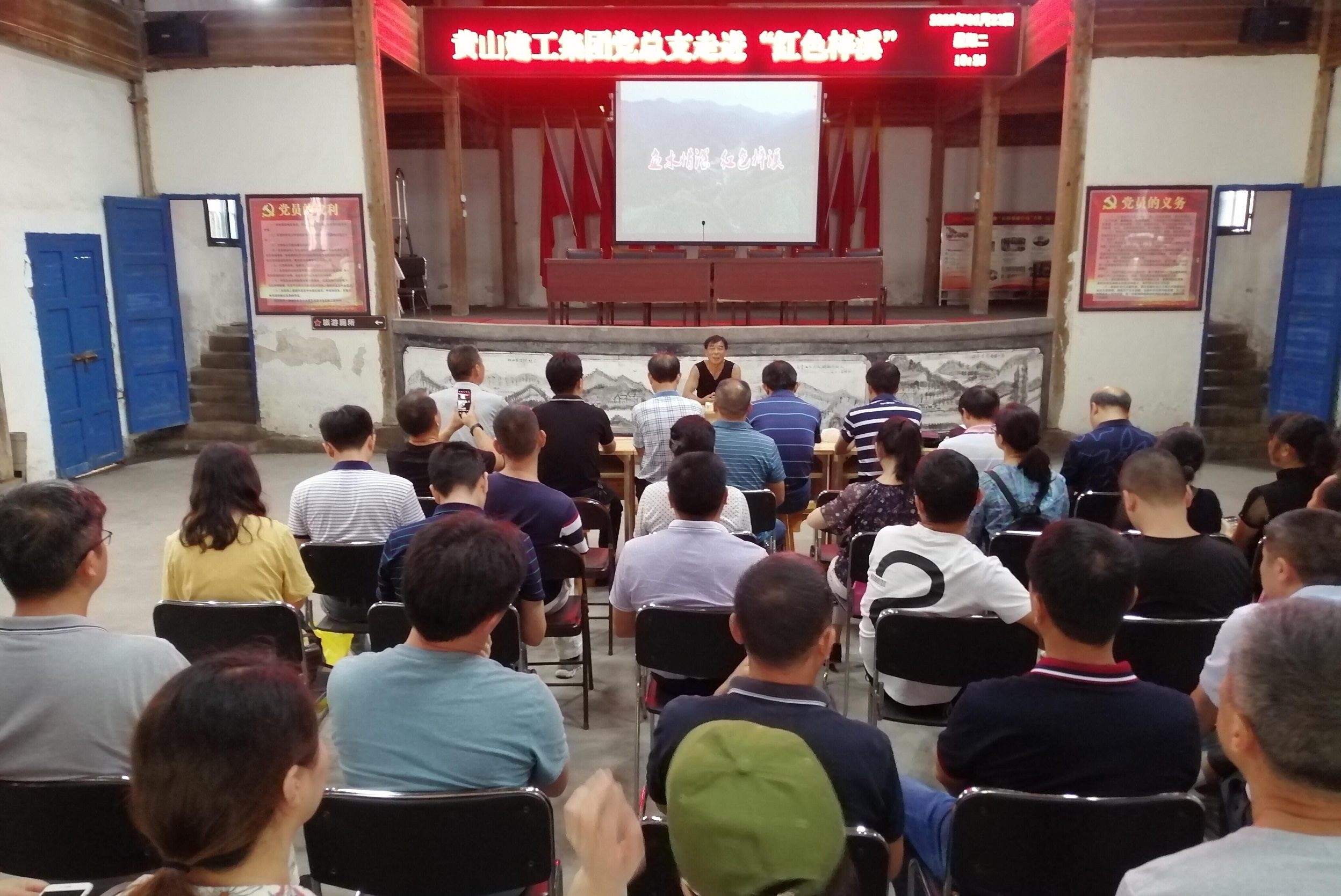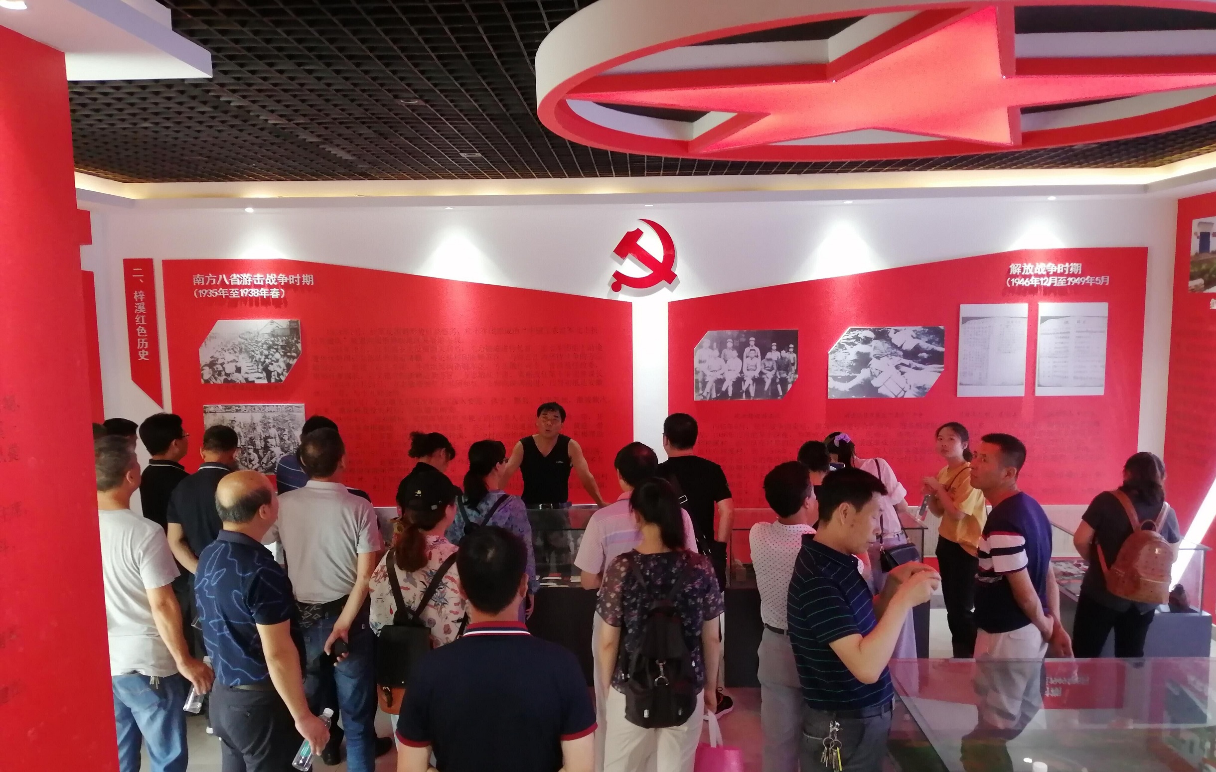 接着梓溪村民组组长、梓溪印记文化发展公司总经理、黄山市人大代表汪跃良同志为我们讲述了该村在板桥乡党委政府的大力支持下,着力做好一“红”一“绿”两篇文章,将美丽乡村建设融入红色旅游,挖掘红色历史,建成了红色印记陈列馆,把绿色生态环境和红色人文景观相结合,以美丽乡村建设为依托,以红色文化为主脉,打造属于“红色梓溪”革命传统教育“新课堂”。