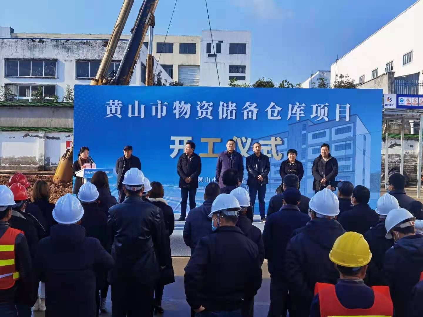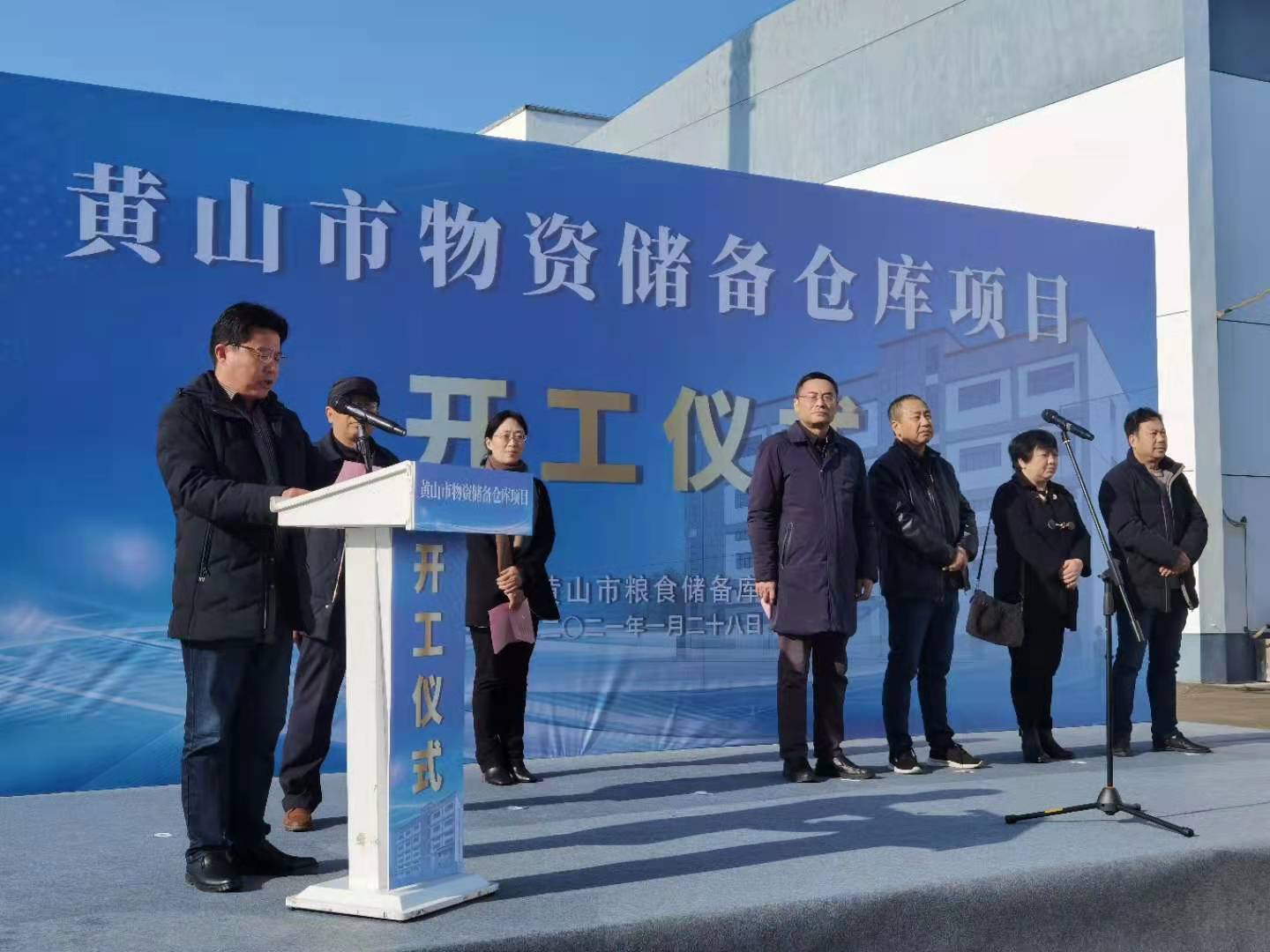 2021年1月28日上午9:30,黄山市物资储备库项目开工奠基活动在九龙工业园区项目地举行,省粮食和物资储备局物资和能源储备处处长孙安庆、四级调研员何薇、市发展改革委(市粮食储备局)主任(局长)丁士礼、建设单位主要负责人、乐鱼网页版登录入口总经理叶金发等相关单位负责人参加了奠基仪式。