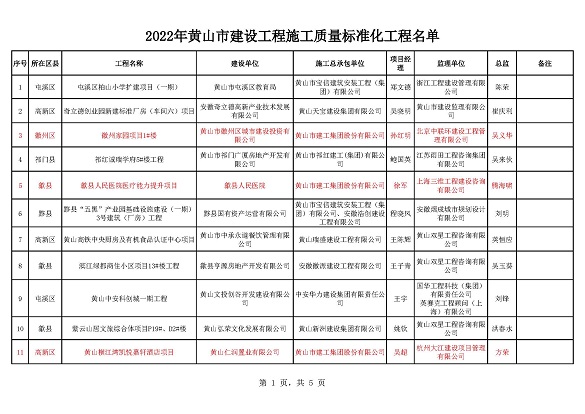 乐鱼网页版登录入口承建的徽州家园项目、歙县人民医院医疗能力提升项目、黄山横江湾凯悦酒店项目、高铁黟县东站站前广场及附属配套工程、黄山市南部城镇群水务调度中心项目、黄山北海路公交综合大楼工程荣获2022年施工质量标准化工程和安全生产标准化工地的殊荣。
