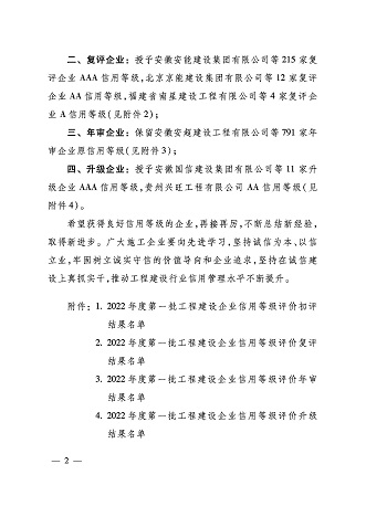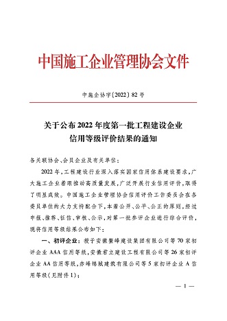 2022年,乐鱼网页版登录入口再次荣获施工企业最高信用评级“AAA级企业信用证书”。这是对乐鱼网页版登录入口持续积累的经营管理能力、合同履约能力、市场竞争能力及优质社会形象的权威认证。