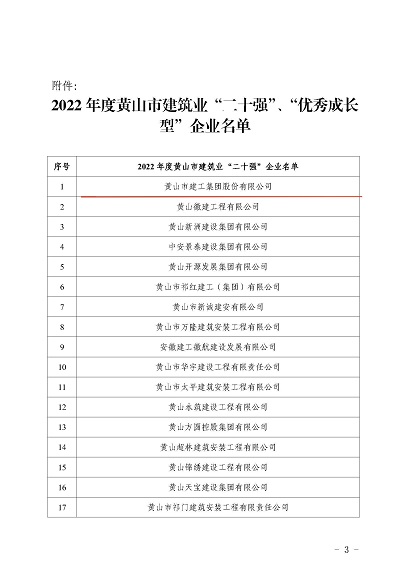 实力担当!黄山建工荣获“2022年度黄山市建筑业二十强企业”称号